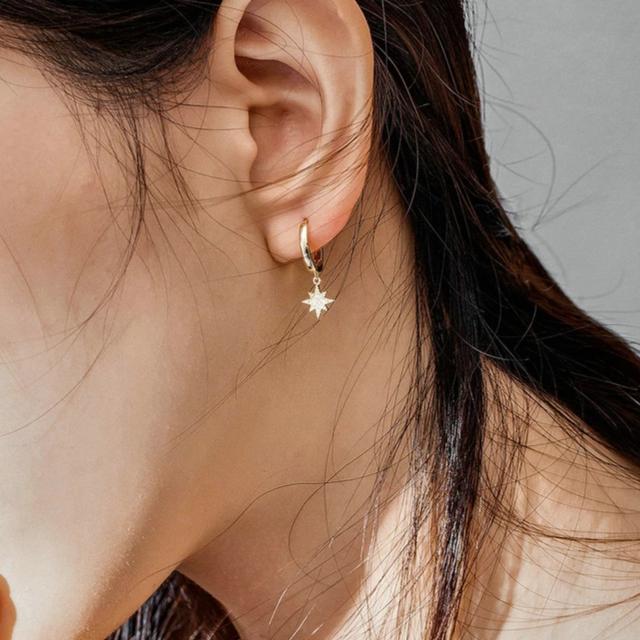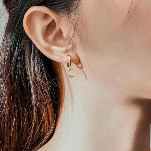 Design: Asymmetrical Crystal Moon and Star on a Hoop Dangle Drop Earrings