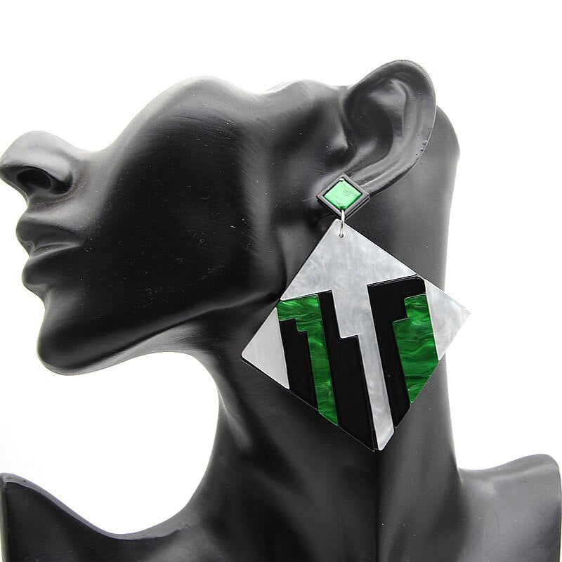 Design: Large Square Resin Geometric Pattern Drop Statement Earrings