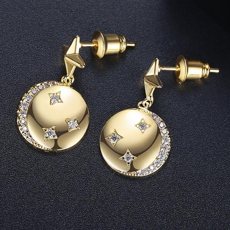Design: Crystal Moon and Stars Dangle Drop Earrings